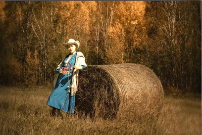 倚靠著這裹挾著秋色的草垛
