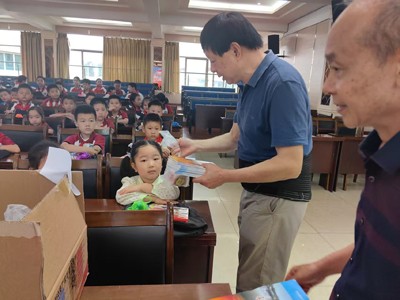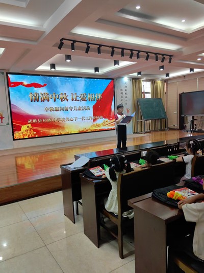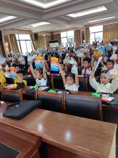 隨后,一場充滿愛意的物資捐贈儀式溫暖展開?!拔謇稀狈娢牡瘸蓡T和學(xué)校老師們,帶著滿滿的關(guān)懷與祝福,為留守兒童送上了精心準(zhǔn)備的慰問品。有印著“沿心筑夢 關(guān)工同行”字樣的筆記本,那一個個工整的字跡仿佛在訴說著對孩子們夢想的守護;嶄新的書包,承載著知識的重量,也寄托著對孩子們未來的美好期許;實用的文具,將成為孩子們學(xué)習(xí)道路上的得力伙伴;還有象征著團圓與甜蜜的月餅,讓孩子們在節(jié)日里感受到家的溫暖。小易作為留守兒童代表上臺發(fā)言,他稚嫩卻堅定的聲音,表達了對關(guān)工委和學(xué)校老師們的感激之情,也展現(xiàn)了留守兒童積極向上、勇敢面對生活的精神風(fēng)貌。