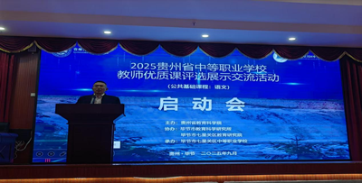 為充分發揮貴州省中等職業學校教師優質課評選活動的引領、示范和帶動作用,促進全省中等職業學校教師專業水平提升,推廣四川省傅洪成名師工作室中職語文項目式教學改革成果,傅洪成受邀參加了于9月22日至26日由貴州省教育科學院主辦,畢節市七星關區中等職業學校承辦的2025年貴州省中等職業學校教師優質課評選展示交流活動(公共基礎課:語文)。傅洪成在活動期間開展了中職語文項目式教學改革推廣活動,為當地中職語文教學改革注入專業動能。來自貴州省九個市(州)及省屬學校的150余位教師參與本次活動。