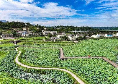 四川省華鎣市把實施渠江水環境綜合治理與建設宜居宜業宜游的和美鄉村有機結合,利用明月鎮白鶴咀村的灘涂興建以“荷月江岸”生態荷塘為主的景點,讓渠江灘涂變成畫廊,吸引不少市民前來打卡游玩。