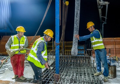 2025年8月23日,中鐵十局的建設者挑燈夜戰在西渝高鐵四川省廣安華鎣市明月鎮人和寨村林家溝特大橋連續梁合龍施工現場。(邱海鷹 劉 忠/文圖)